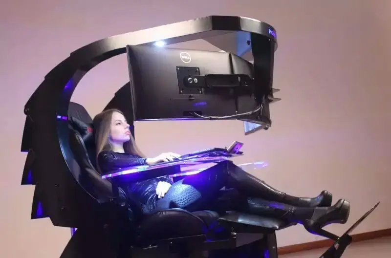 Hot selling sk cluvens imperator works scorpion pc gaming chair cockpit recliner esport with gaming desk support 3 monitors.