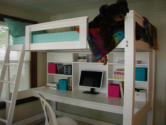 20 Charming Selections of White Loft Beds with Desk from www.myaustinelite.com Crafted from pine, this loft bed is ideal for the studious child, with three storage shelves below for accumulating a favorite book. Not available for pickup and same day delivery. Choose from contactless same day delivery, drive up and more. Includes guardrails for the loft bed and a solid wood fixed ladder with four rungs. And these loft beds are great if you have limited space. Twin over full bunk bed with ladder, solid wood bunk beds twin over full size with guardrail, twin over full bunk bed frame, can be separated into twin/full size bed, no box spring needed (white) 4.4 out of 5 stars. This gives them a dedicated study area while optimizing space. Obviously, a wood loft bed with a desk underneath is popular for tweens and teens.