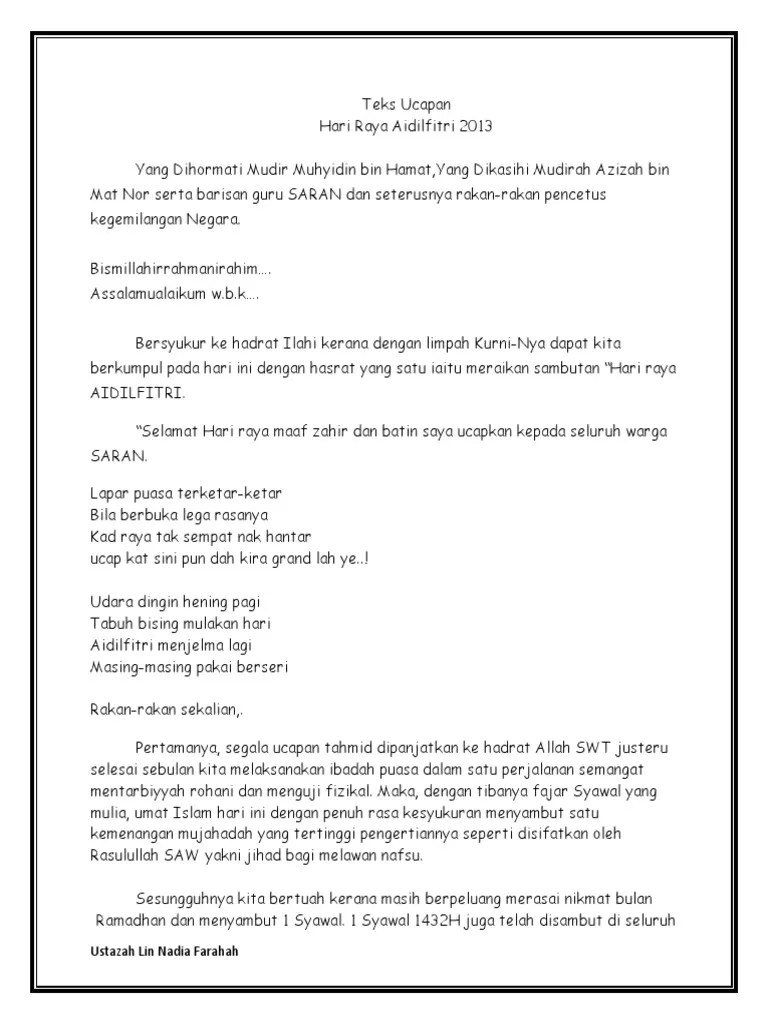 Dipertemukan dalam majlis ramah mesra sempena hari raya aidilfitri bersama kumpulan sasar kementerian pada bulan syawal ini, bulan. Text of teks ucapan hari raya. Teks ucapan hari raya aidilfitri peringkat . Skrip pengacara majlis jamuan hari raya 20188. Mengakhiri ucapa saya pada kali ini, sekali lagi saya mengucapkan selamat hari raya maaf zahir dan batin.